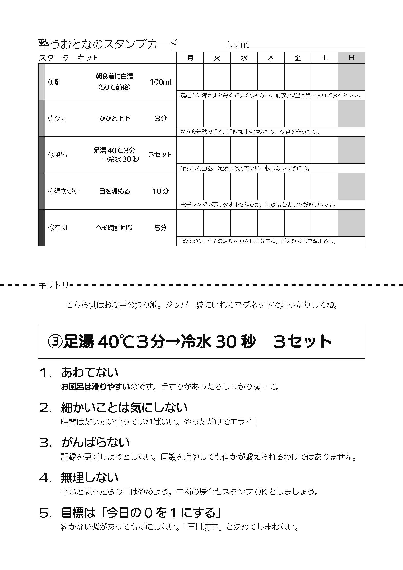 ※このスタンプカードは整うことを目的に制作しましたが、健康や安全を保証するものではありません。何かあっても責任は負えないので、ご自身の健康状態を優先し、体調に不安がある場合はご使用をお控えください。